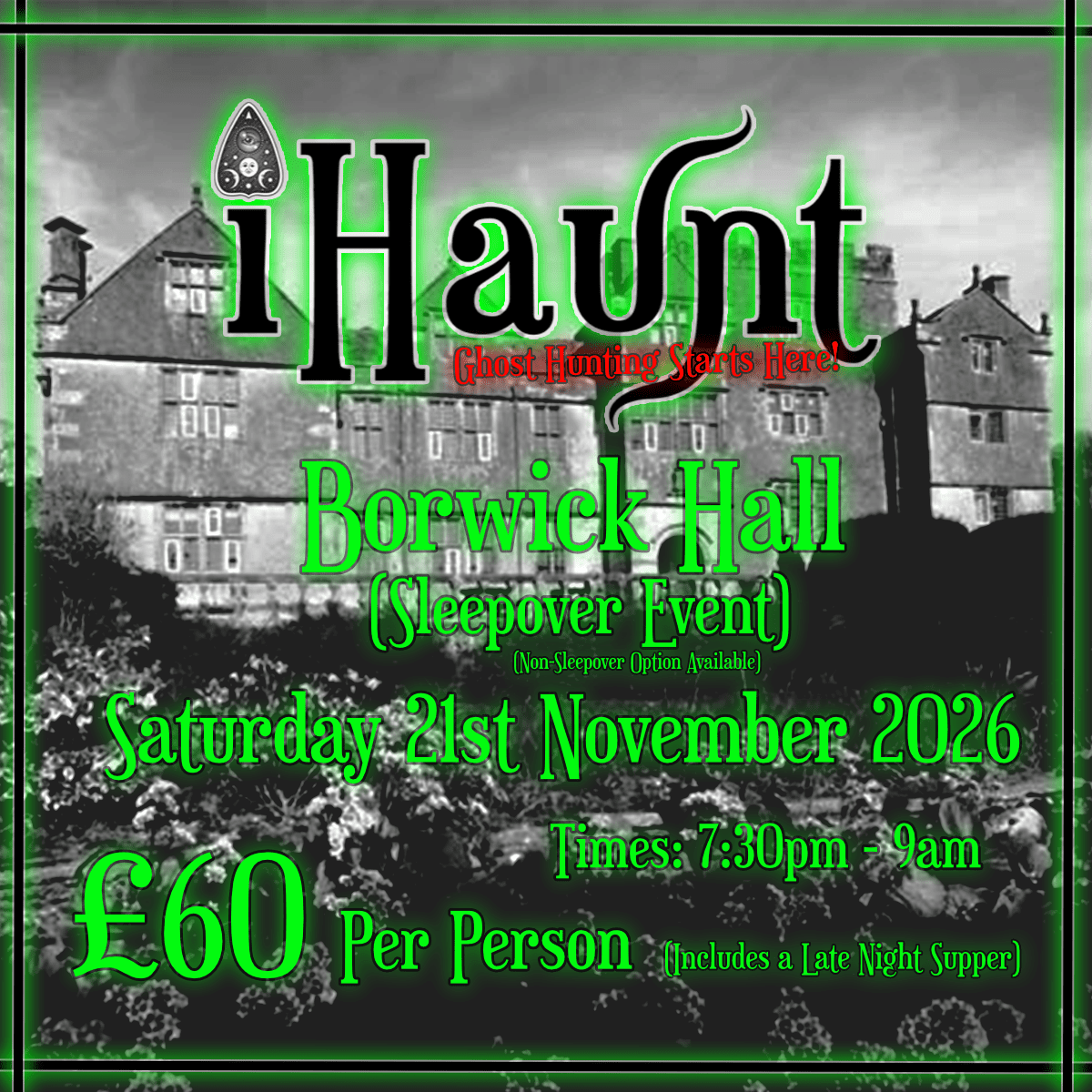 Step into the shadows with iHaunt for an unforgettable night of paranormal investigation at Borwick Hall, a grand 16th-century manor with a dark and haunted past. This is no staged ghost tour — this is real ghost hunting in one of Lancashire’s most active paranormal hotspots.