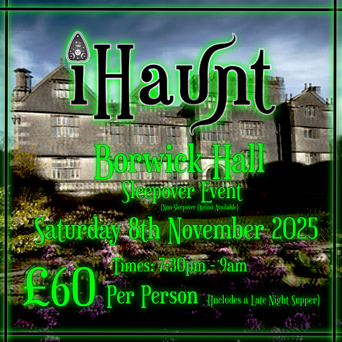 Step into the shadows with iHaunt for an unforgettable night of paranormal investigation at Borwick Hall, a grand 16th-century manor with a dark and haunted past. This is no staged ghost tour — this is real ghost hunting in one of Lancashire’s most active paranormal hotspots.