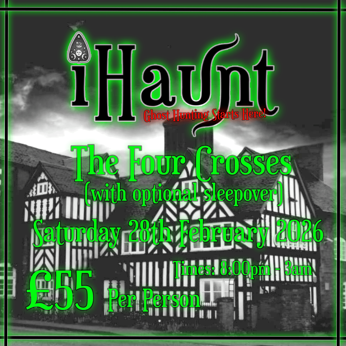 Step inside the ancient and unsettling walls of The Four Crosses with iHaunt this February for a night of raw, real paranormal investigation. Built in 1636, this centuries-old coaching inn is infamous for its violent past, chilling apparitions, and relentless poltergeist activity.