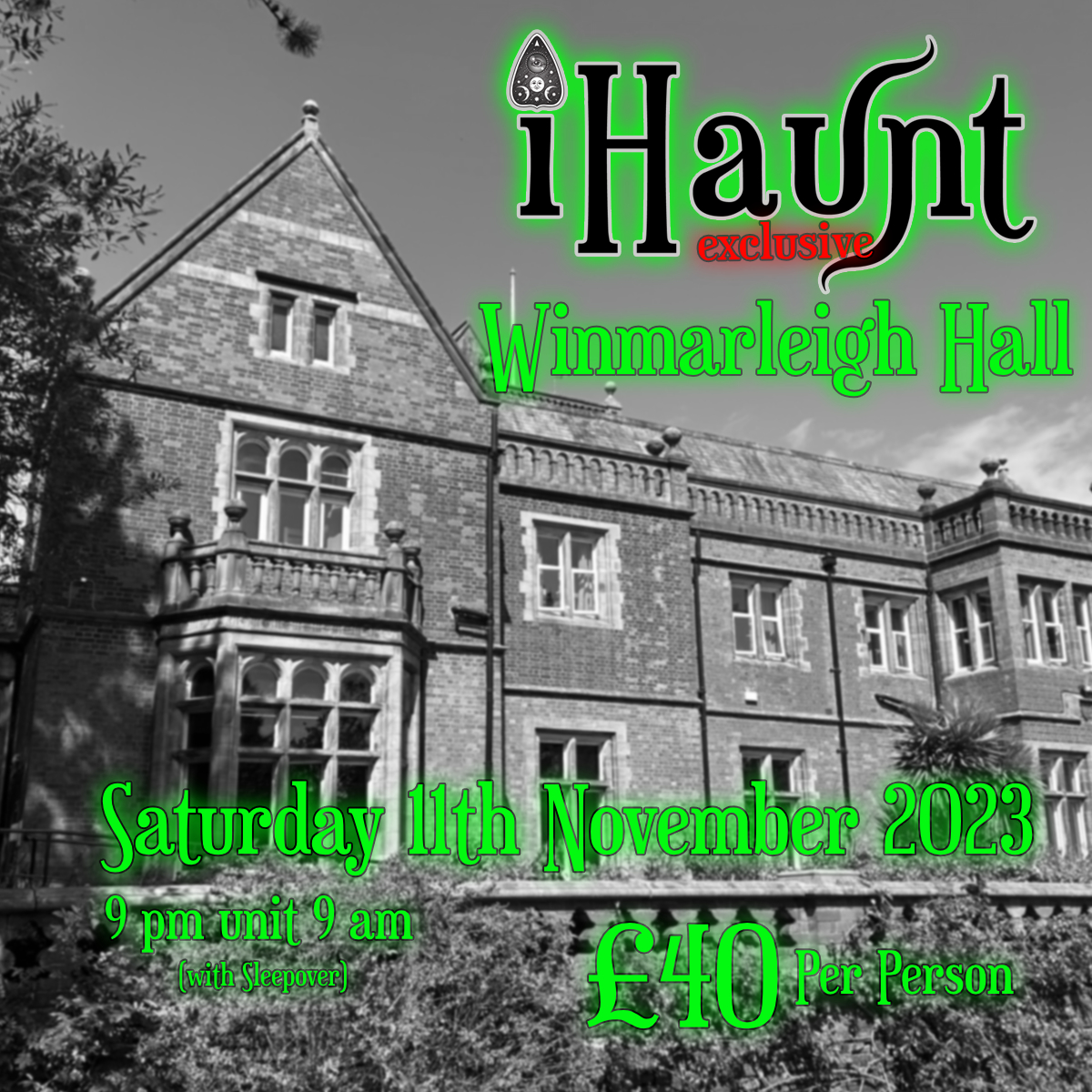 Join iHaunt at Winmarleigh Hall for a Ghost Hunt Event, Saturday 11th November 2023.