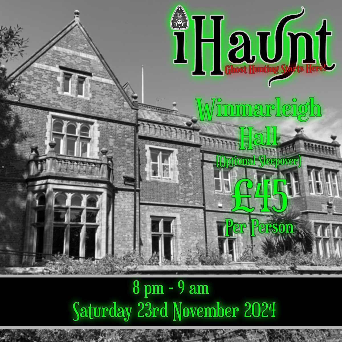 Join iHaunt at Winmarleigh Hall for a Ghost Hunt Event, Saturday 11th November 2023.